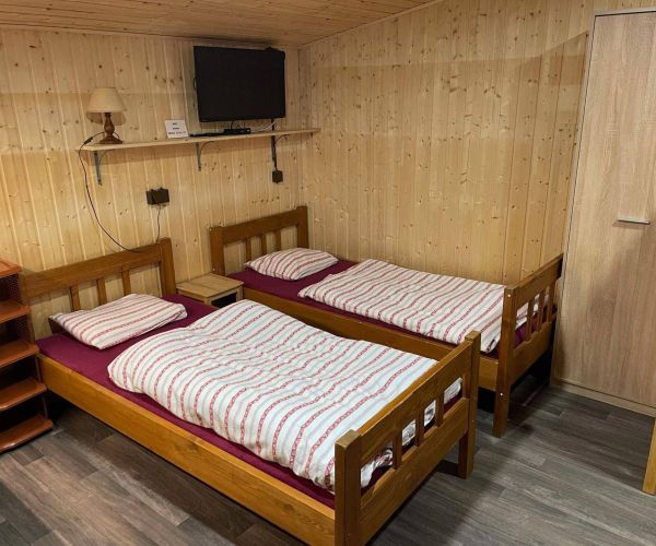 - Jedna ložnice s manželskou postelí nebo oddělenými lůžky, palanda pro další dvě osoby