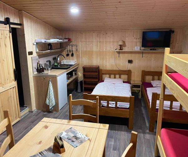 V těsné blízkosti (cca 30m) od Benátecké chalupy nabízíme ubytování v oddělené objektu – Domečku. Ubytování je vhodné zejména pro rodiny.
