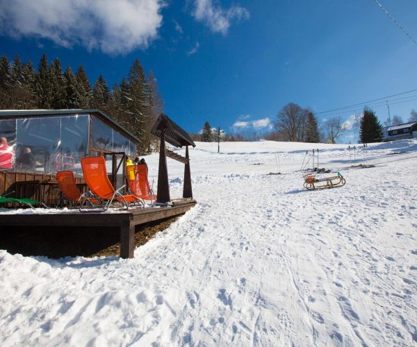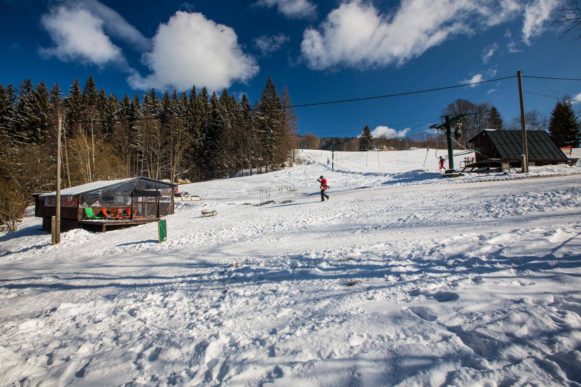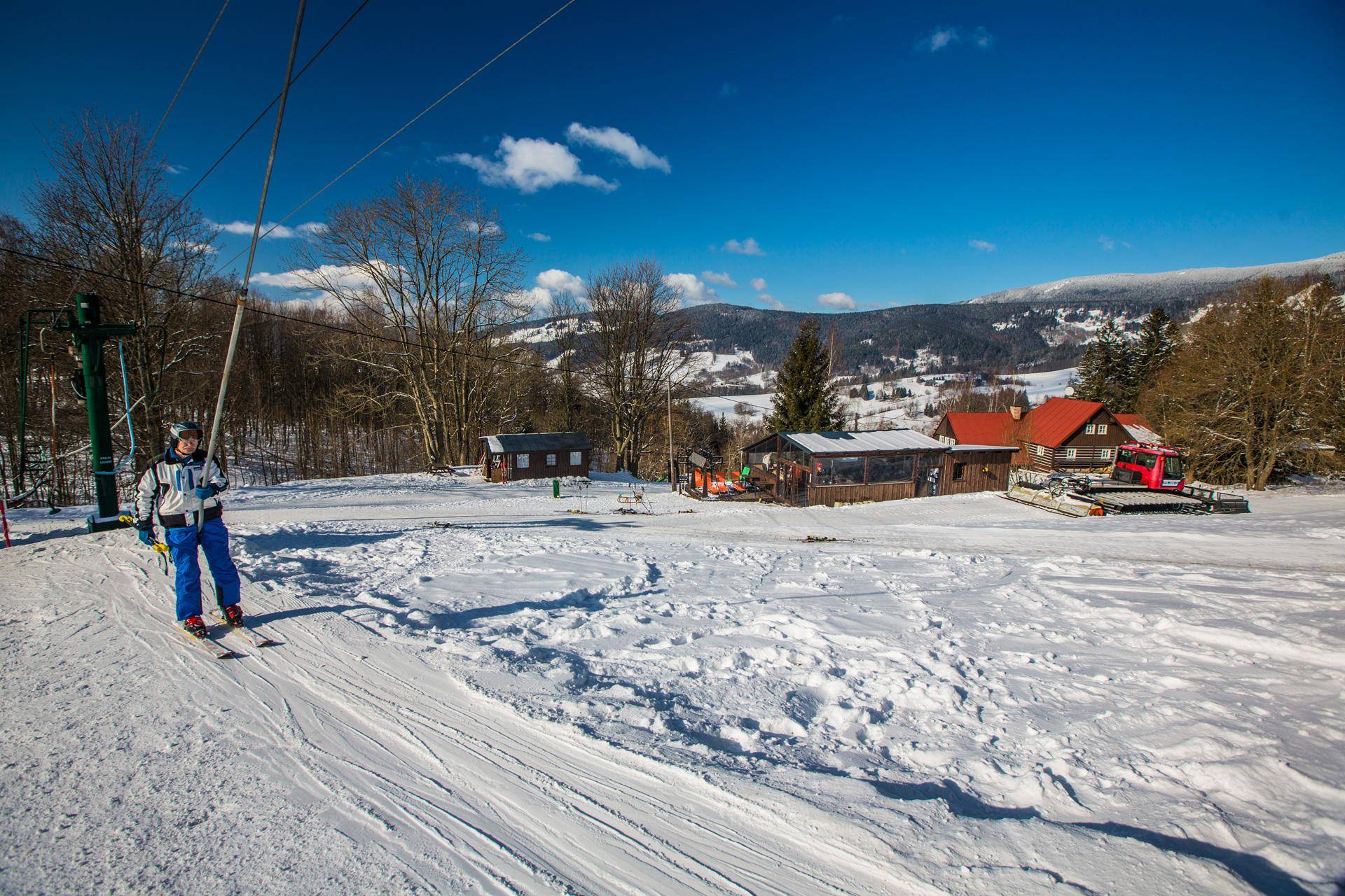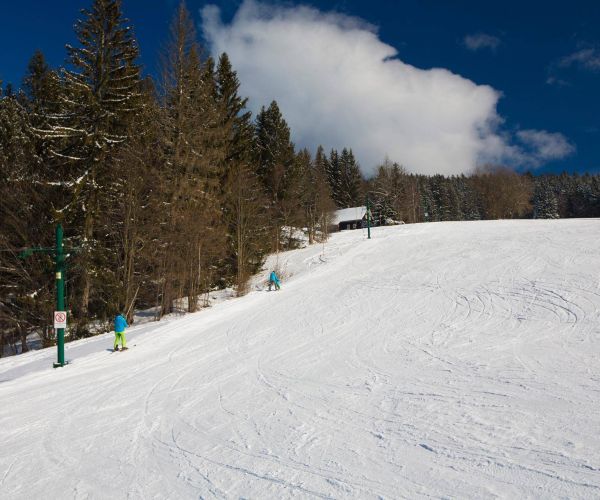 Benátecká chalupa nabízí možnost lyžování a snowboardingu na vlastním lyžařském vleku, který je vhodný pro rodiny s dětmi, začínající lyžaře a lyžařské kurzy.